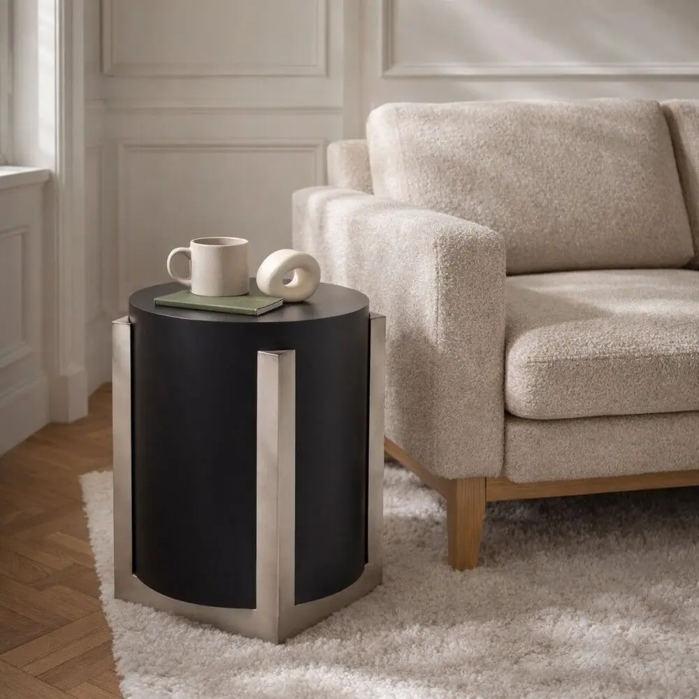 تصميم أسطواني حديث بلمسة معدنية أنيقة، يمنح الطاولة مظهرًا متوازنًا وعصريًا يناسب مختلف أنماط الديكور.اللون: