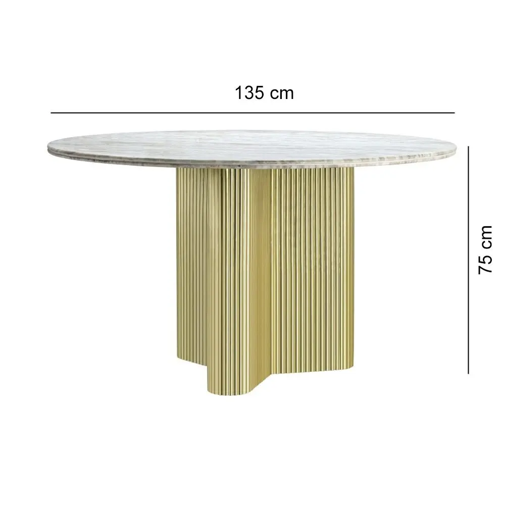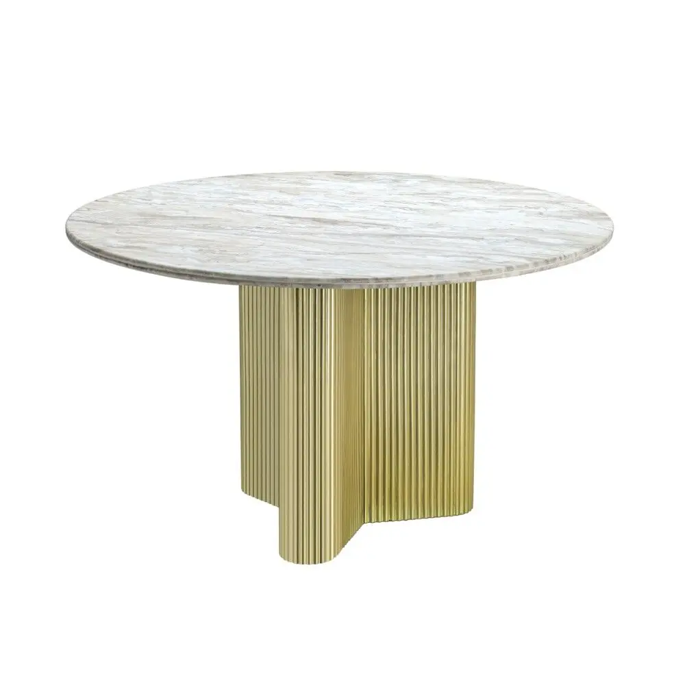 درجات البيج والرمادي للسطح الرخامي مع قاعدة باللون الذهبي المصقول.التصميم: