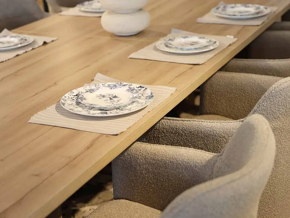 تتميز طاولة فرينك بمقاس واسع، ما يجعلها مثالية لتجميع العائلة والأصدقاء حول مائدة واحدة. تصميمها عملي ومرتّب، يتيح استخدام مساحة السطح بشكل مثالي لتقديم الطعام أو وضع الديكورات. توفر استقرارًا وقوة لتحمل الاستخدام اليومي، مع خطوط أنيقة تناسب مختلف أساليب الديكور. تعتبر خيارًا ممتازًا للمساحات الكبيرة، حيث تجمع بين الراحة والوظائف العملية في آن واحد.