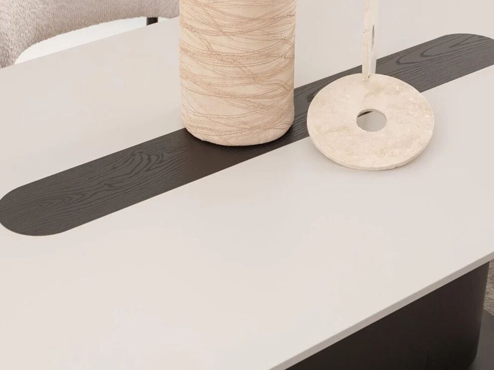 بتشطيب فاخر بلون الاسود مع البيج الأنيق، تضفي بيليز حضورًا راقياً في المساحة، سواء كانت في منزل عائلي أو مساحة ضيافة راقية. الطاولة مصنوعة من خشب MDF عالي الجودة مع طبقة نهائية من الخشب الطبيعي (veneer)، مما يمنحها مظهر الخشب الحقيقي مع متانة استثنائية تدوم لسنوات.
