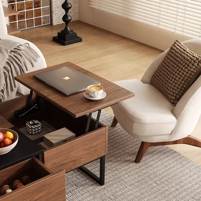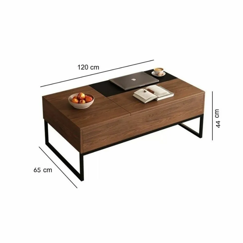 طاولة قهوة بمساحة تخزين وسطح قابل للرفع ميراج - بني واسود