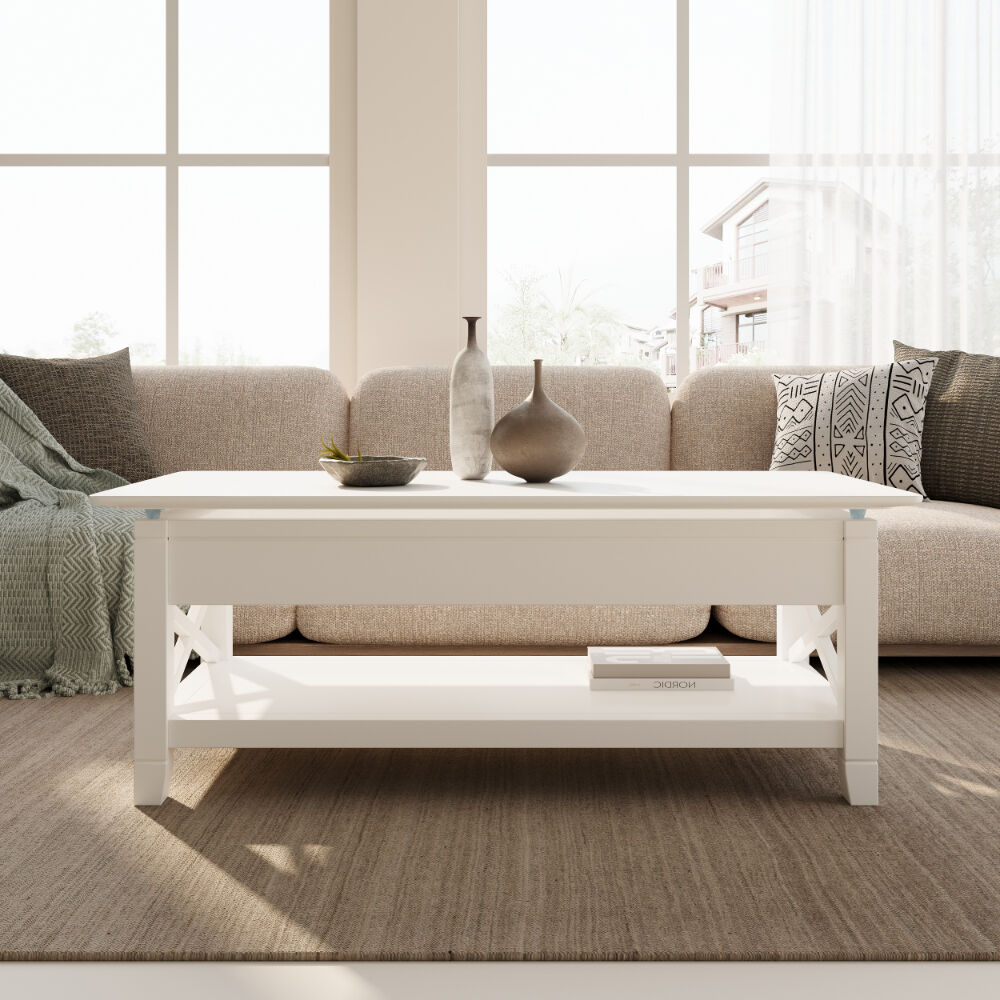 طاولة قهوة جينو بسطح رفع وتخزين داخلي - ابيض