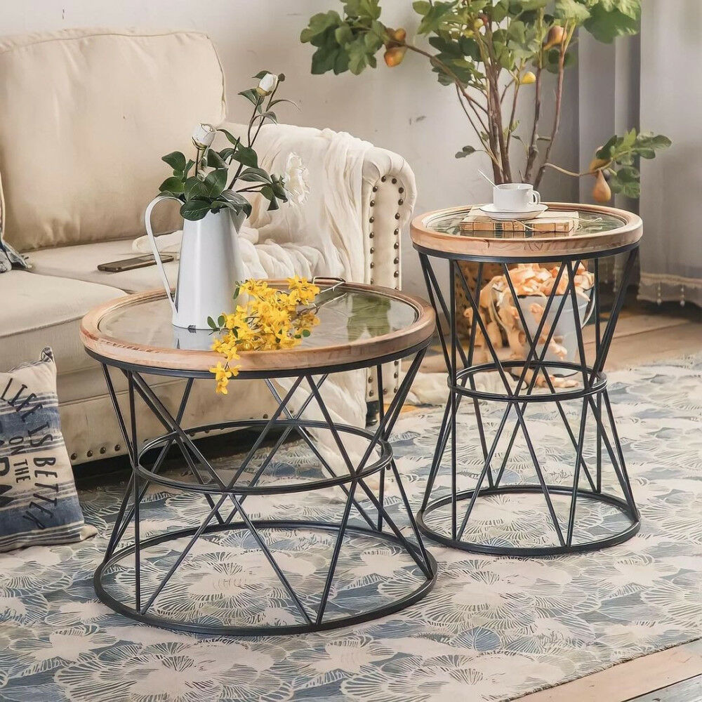 طاولة حديد سطح خشب مزخرف بواجهة زجاج تمثل موجة التصاميم العصرية بلمسات ريفية فاخرة. تشكل الطاولة إضافة أنيقة وعملية لأثاث غرفة المعيشة الخاصة بك.