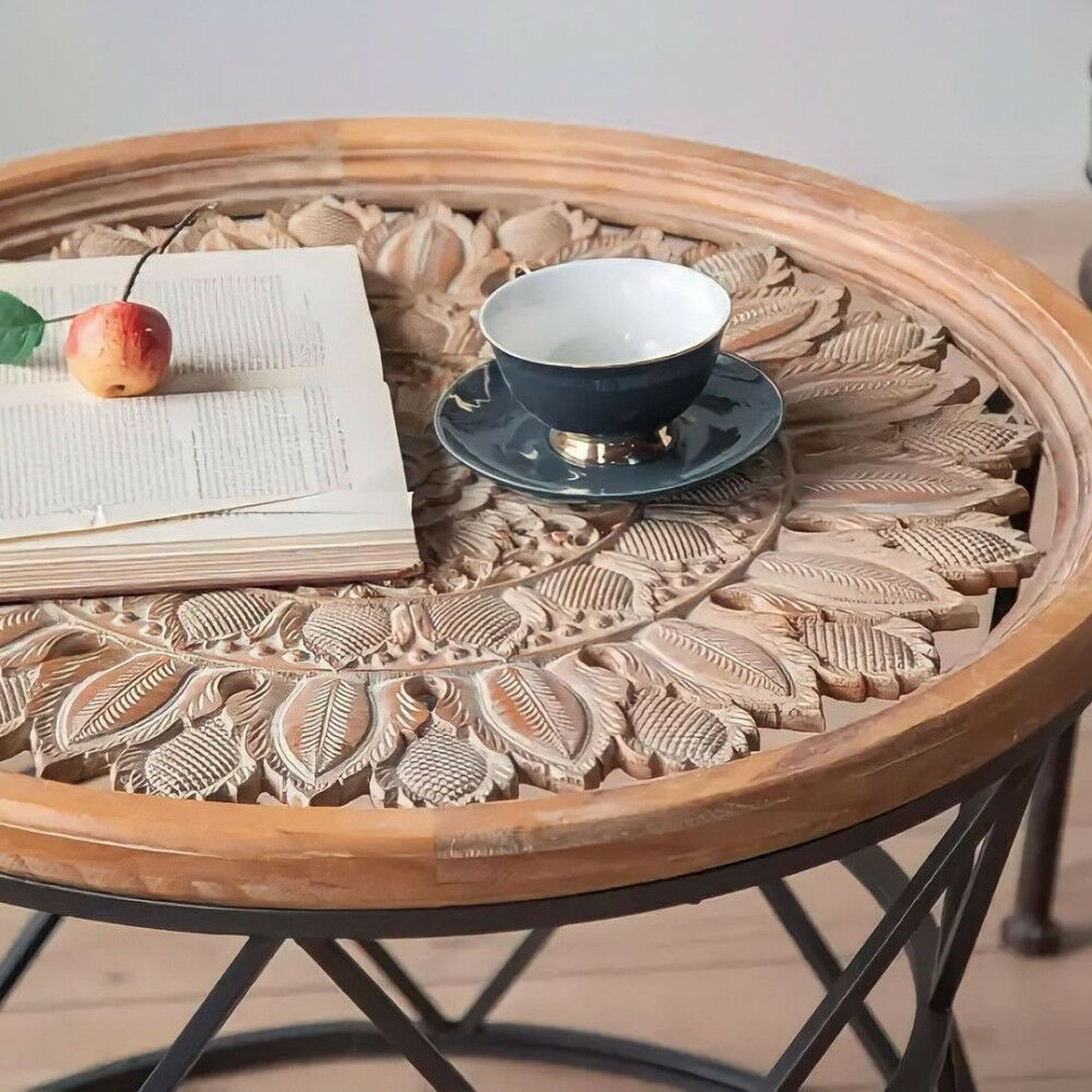 طاولة قهوة سطح خشب مزخرف بواجهة زجاج روكا