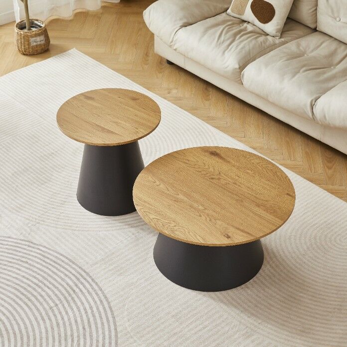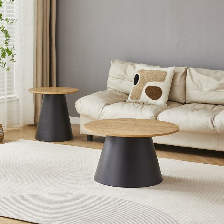 طاولة قهوة قطعتين فاليريا - اسود وخشبي