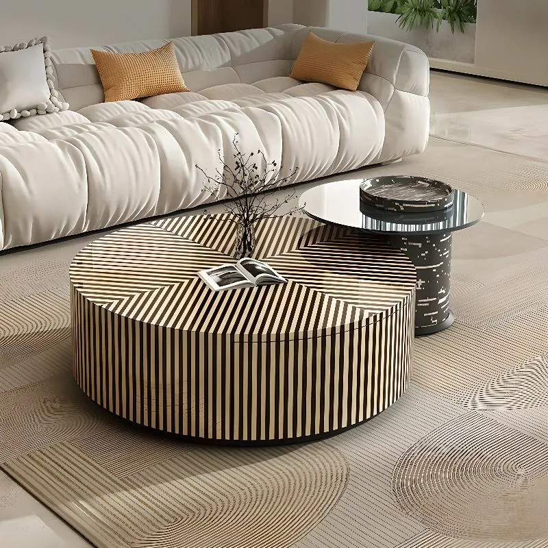يجمع اللونان الأسود والبيج في هذه الطاولة بين الفخامة والبساطة، مما يسمح لها بالانسجام بسهولة مع مختلف أنماط الديكور الداخلي.