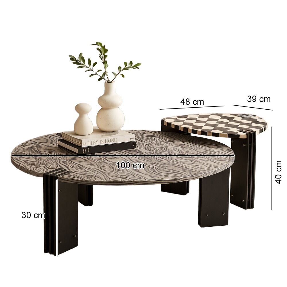 طاولة قهوة راوندي قطعتين - بني وبيج