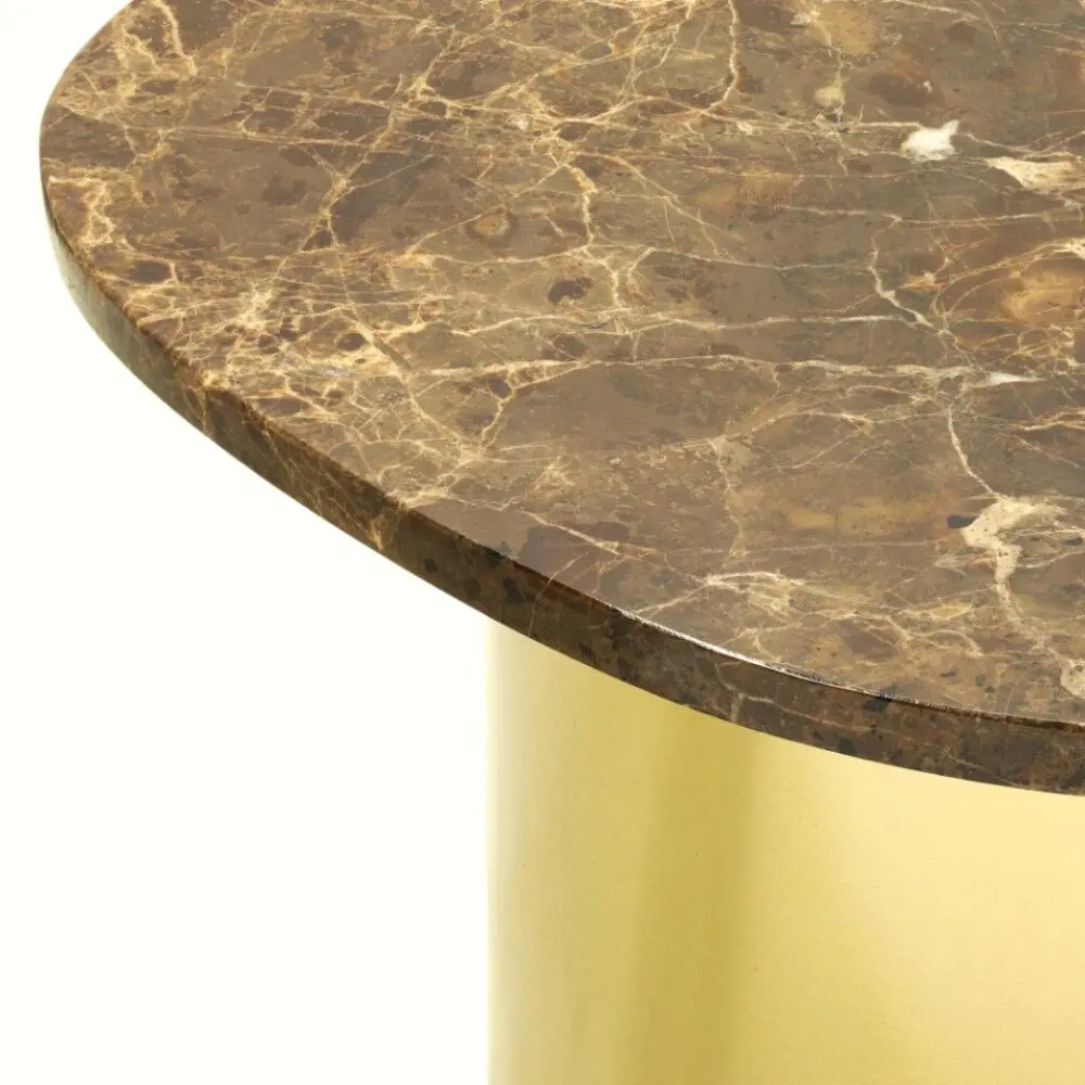 بني أنيق للرخام ينسجم مع أرجل باللون الذهبي بلمسة مصقولة تضيف فخامة ودفئًا للمساحة.التصميم: