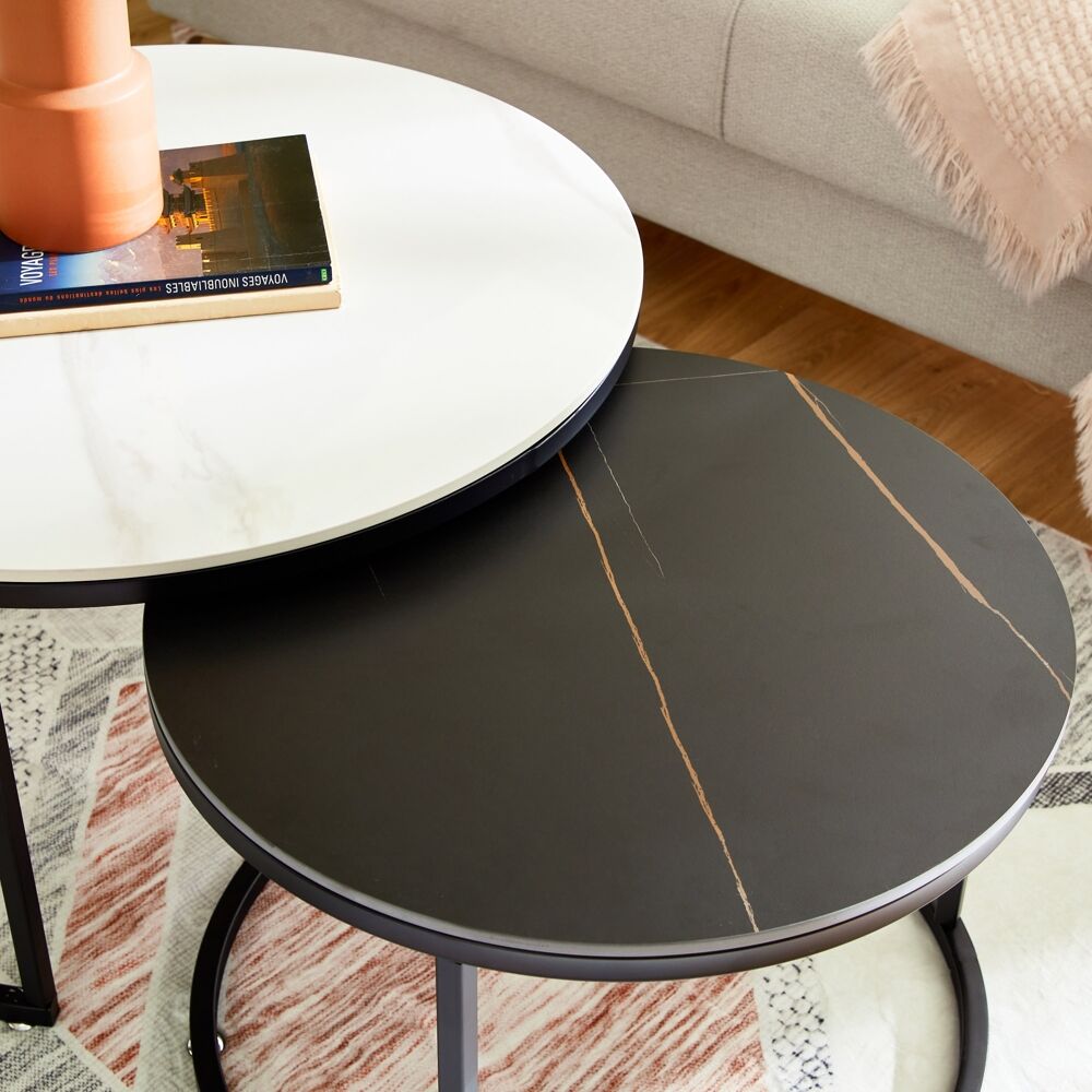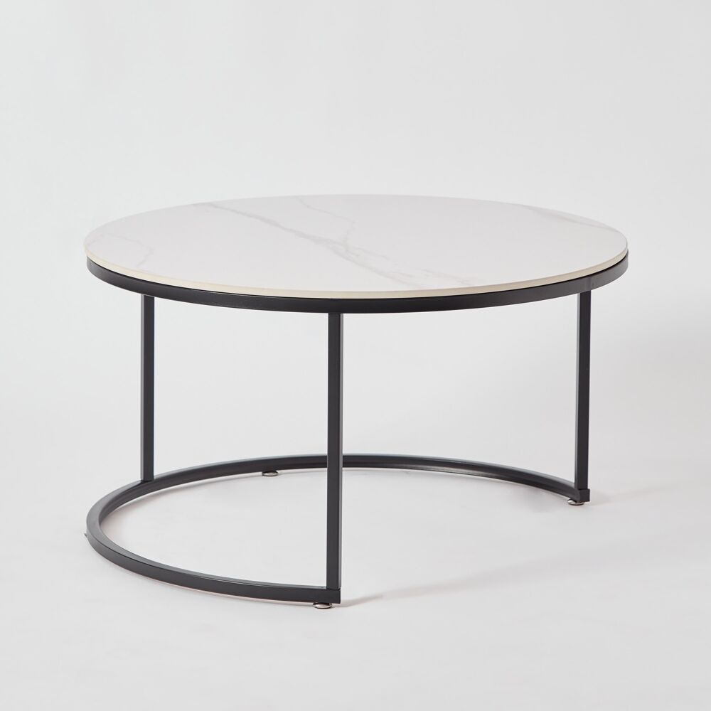 طاولة 1 الوزن: 27.4 كجم x القطر: 80 سم x الارتفاع: 45 سم طاولة 2 الوزن: 27.4 كجم x القطر: 60 سم x الارتفاع: 40 سم |
