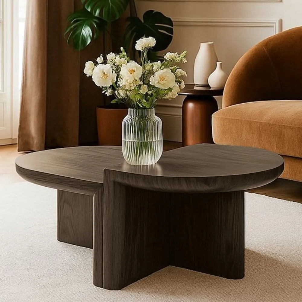 يتكون التصميم من قطعتين يمكن تنسيقهما معًا أو استخدامهما بشكل منفصل، مما يمنحك مرونة في ترتيب المساحة وفقًا لاحتياجاتك.اللون البني الدافئ: