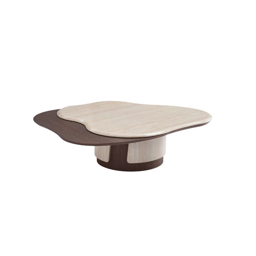مزيج متناغم من البني الغامق والبيج يمنح الطاولة طابعاً دافئاً وعصرياً.التصميم