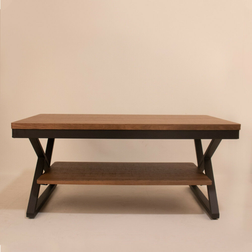 أنت تراجع:طاولة مجلس بسطحين خشب وبقواعد حديد