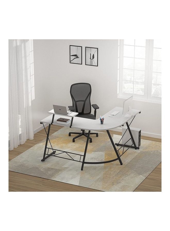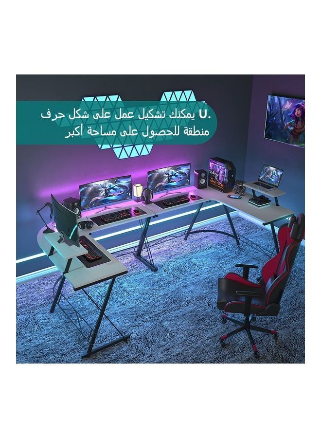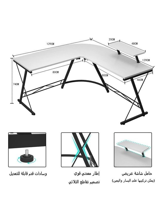 طاولة مكتب بالانس - أبيض وأسود طاولة كمبيوتر للألعاب مع حامل بتصميم أنيق, الميزات الأساسية [حامل شاشة عرض النطاق الترددي للمكتب على شكل حرف ال توفر لك طاولة الزاوية المستديرة مساحة كبيرة قابلة للاستخدام وتوفر المساحة الخاصة بك. مقاس سطح المكتب: 129 سم * 46 سم ضمن الإطار المعدني القوي وتصميم الاتصال الثلاثي ثباتًا أفضل. مصنوعة من لوح ألياف خشبي متوسط الكثافة، وهي قوية بما يكفي لدعم الأشياء الثقيلة. مقاوم للماء والخدش، وسهل التنظيف للغاية. ارتفاع 74 سم يوفر مساحة كافية لراحة القدم. يمكن أن تكون هذه الطاولة على شكل حرف L مكتبًا، أو طاولة ألعاب، أو مكتبًا، أو مكتبًا للكتابة، أو مكتبًا للكمبيوتر، وما إلى ذلك. وسادة سهلة التجميع والتسوية..
