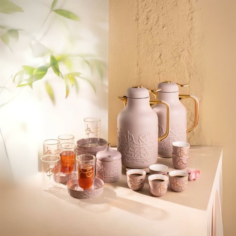طقم الشاي والقهوة من جوار يقدم لكِ تجربة ضيافة متكاملة ومميزة بتصميم أنيق، فهو مناسب لكافة المناسبات، مما يضفي لمسة من الرقي والتميز على كل جلسة ضيافة.