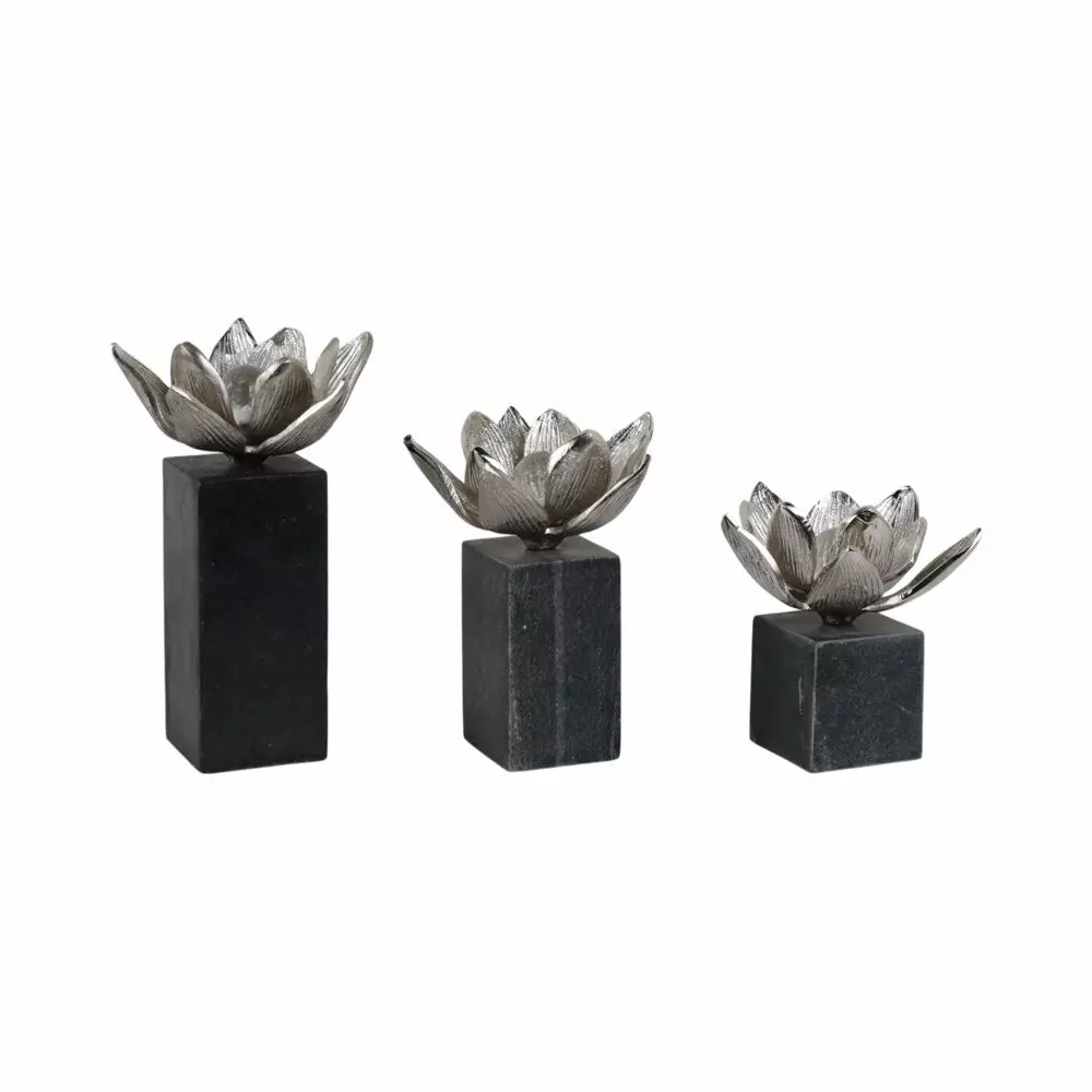 تمثال فضي مع قاعدة رخامية - مجموعة من 3 قطع: إذا كنت تبحث عن لمسة جمالية تعزز من ديكور منزلك، فإن هذه التماثيل الزهرية الفضية هي الحل الأمثل. تعكس هذه القطع الفنية الأناقة والذوق الرفيع، مما يجعلها مثالية لأي غرفة.