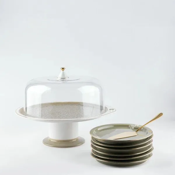 يتضمن الطقم 1 حامل كيك 1 غطاء 1 سكينة 6 صحون فقط