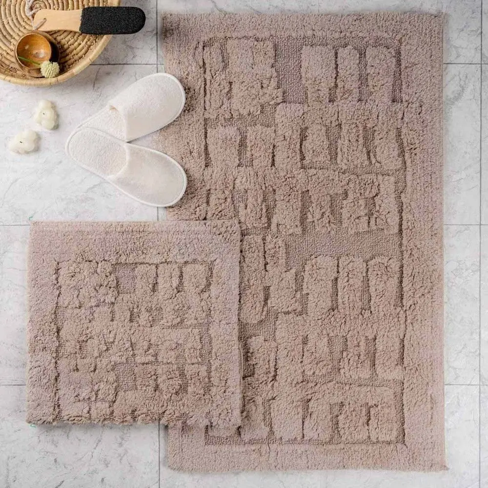 طقم دعاسة أرضية بابيون تركي فرو - قطعتين - بيج