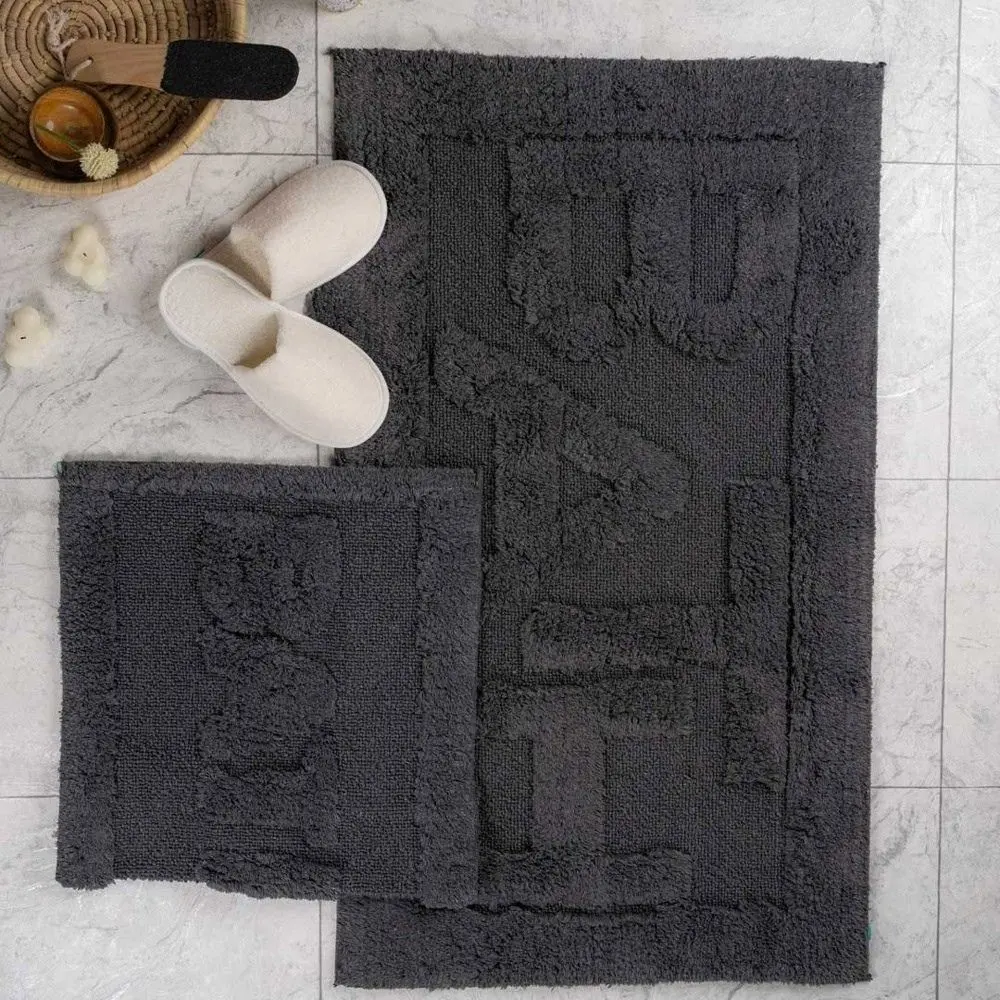طقم دعاسة أرضية باث تركي فرو - قطعتين - أسود