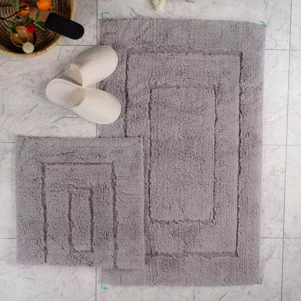 طقم دعاسة أرضية فريم تركي فرو - قطعتين - رمادي فاتح