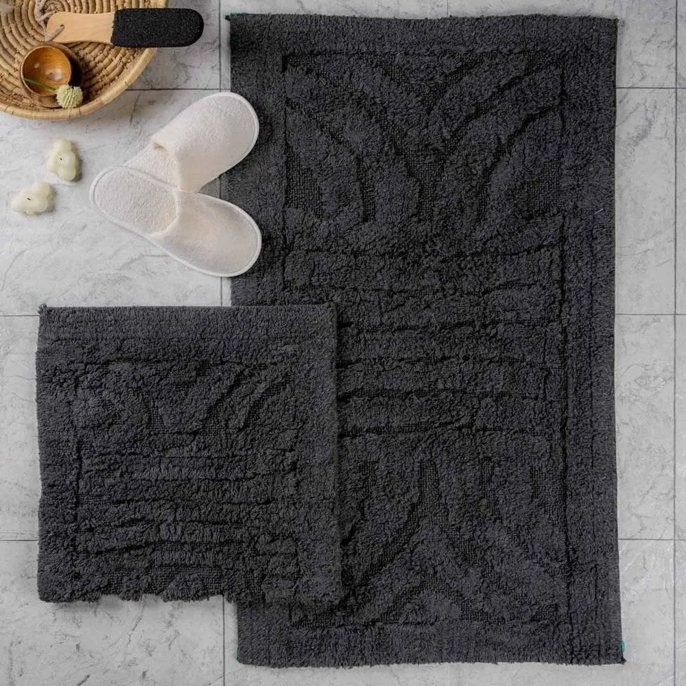 طقم دعاسة أرضية هيرينج بون تركي فرو - قطعتين - أسود