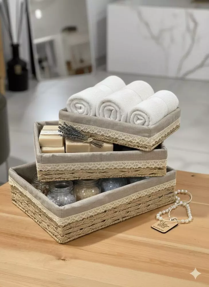 سلال تخزين أنيقة بتصميم عملي وعصري أضيفي لمسة من الترتيب والجمال إلى منزلك مع هذه السلال المصممة بعناية لتجمع بين الأناقة، العملية، وجودة التصنيع. خيار مثالي لكل من يبحث عن حل ذكي للتخزين مع مظهر راقٍ ينسجم مع مختلف أنماط الديكور.