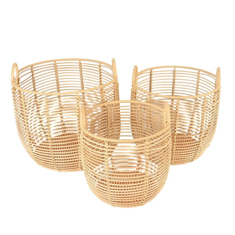طقم سلال تخزين ملابس راتان 3 قطع مولتو - بيج