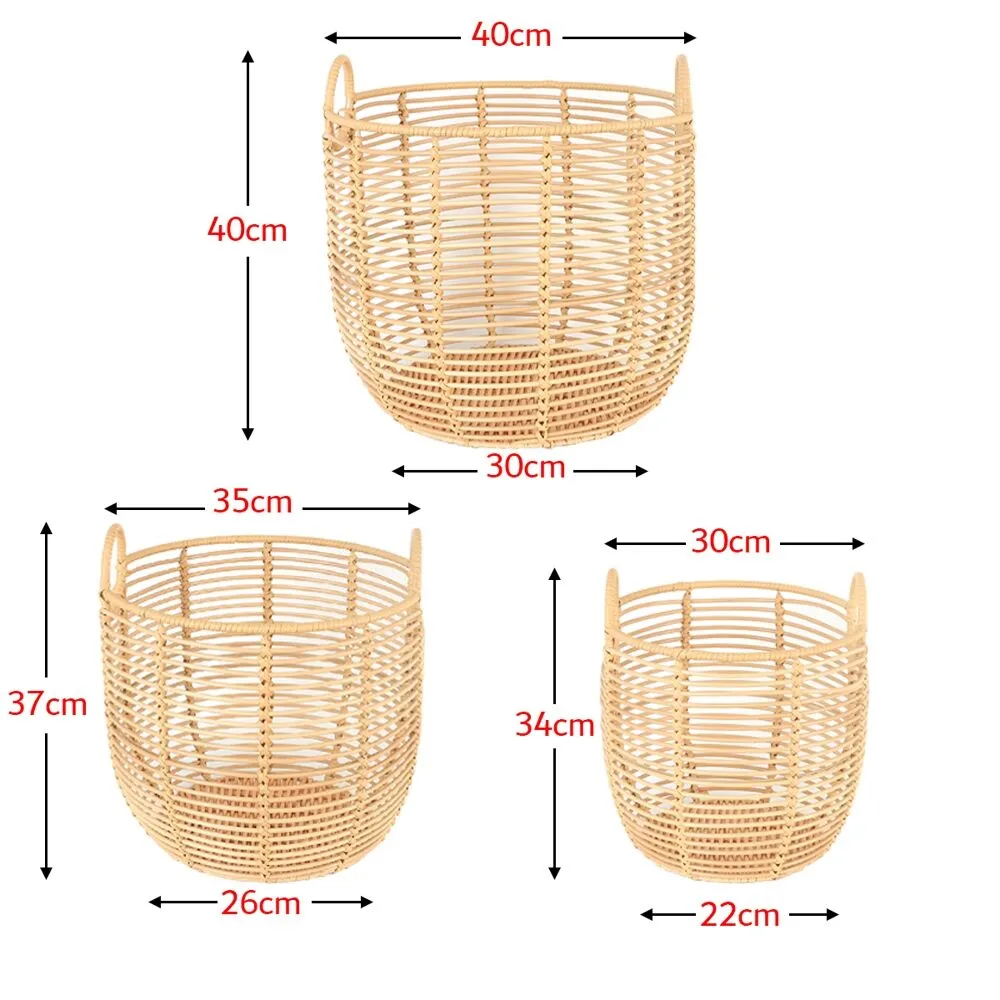 طقم سلال مصنوع من الراتان بمقبض لتمكين حملها ونقلها بسهولة, مفيدة وعملية للتنظيم و للتخزين الأشياء بسهولة.