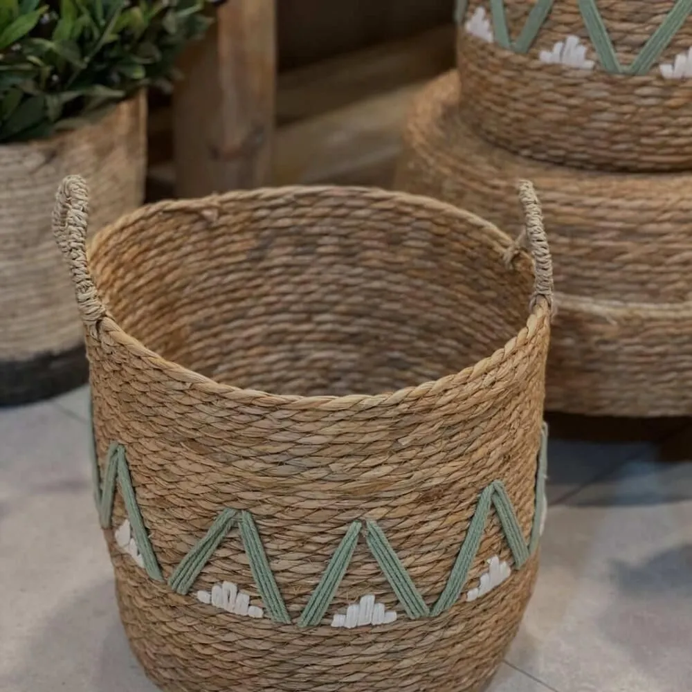 سلال خوص طبيعية يدوية تضيف لمسة من الجمال والتنظيم مصنوعة يدويًا من حبال الخوص الطبيعي بجودة عالية وتشطيب متقن تضيف طابع ريفي دافئ لأي ركن في منزلك. بتصميم عملي وأنيق يمكن استخدامها بطرق متعددة: لتخزين المفارش أو البطانيات بطريقة مرتبة. لتقديم الهدايا بأسلوب راقٍ وفريد. كحوض زراعي داخلي يضيف لمسة طبيعية للمساحات. لتنظيم الأدوات أو الألعاب أو حتى كعنصر ديكوري بحد ذاته. تتوفر بثلاثة أحجام مختلفة تناسب كل الاحتياجات، ومزينة بنقوش تضيف لمسة عصرية على الخامة الطبيعية. مصنوعة يدويًا بعناية خامة طبيعية 100% مثالية للديكور الريفي والبوهيمي.