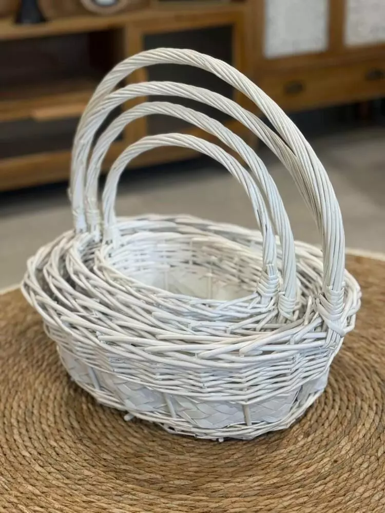 طقم سلة خوص روزانا 4 قطع - ابيض