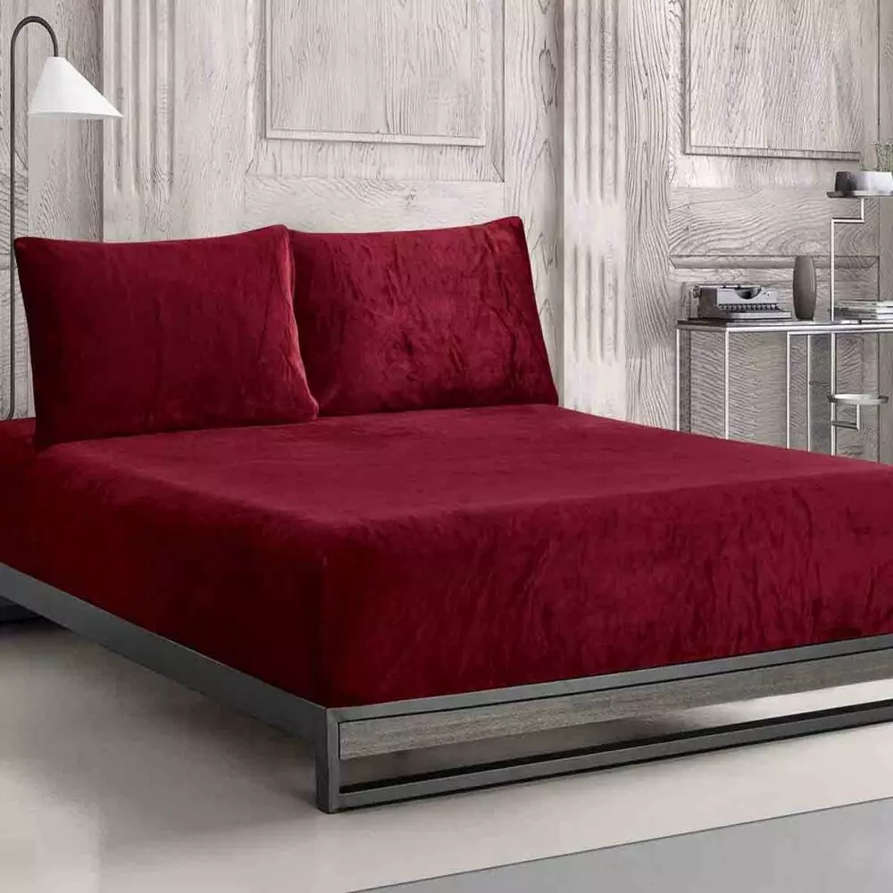 أنت تراجع:طقم شرشف شتوي مخمل كوين دفى - 3 قطع - احمر