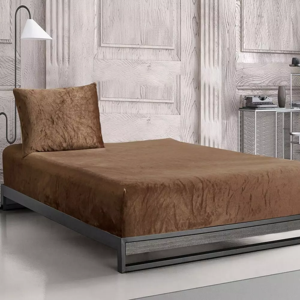 أنت تراجع:طقم شرشف شتوي مخمل مزدوج دفى - قطعتين - بني