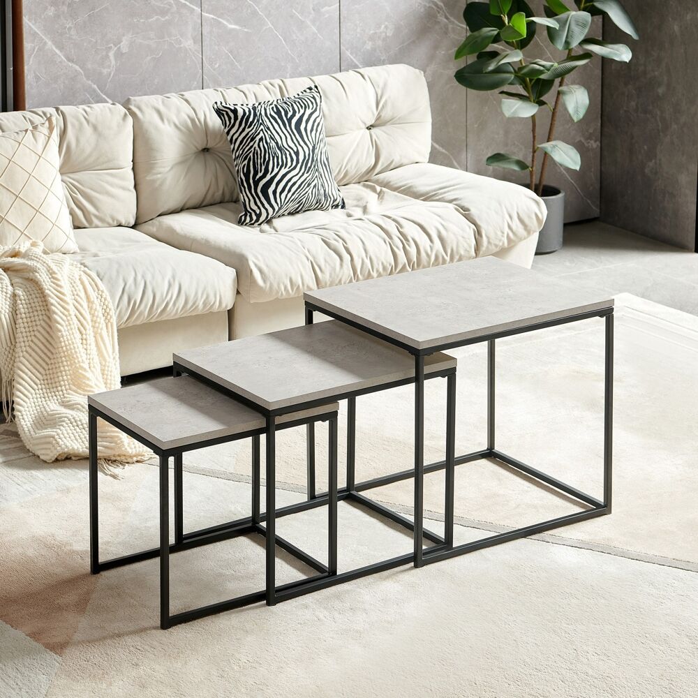 | يتضمن الطقم | 1 طاولة جانبية كبيرة - 1 طاولة جانبية وسط - 1 طاولة جانبية صغيرة فقط |