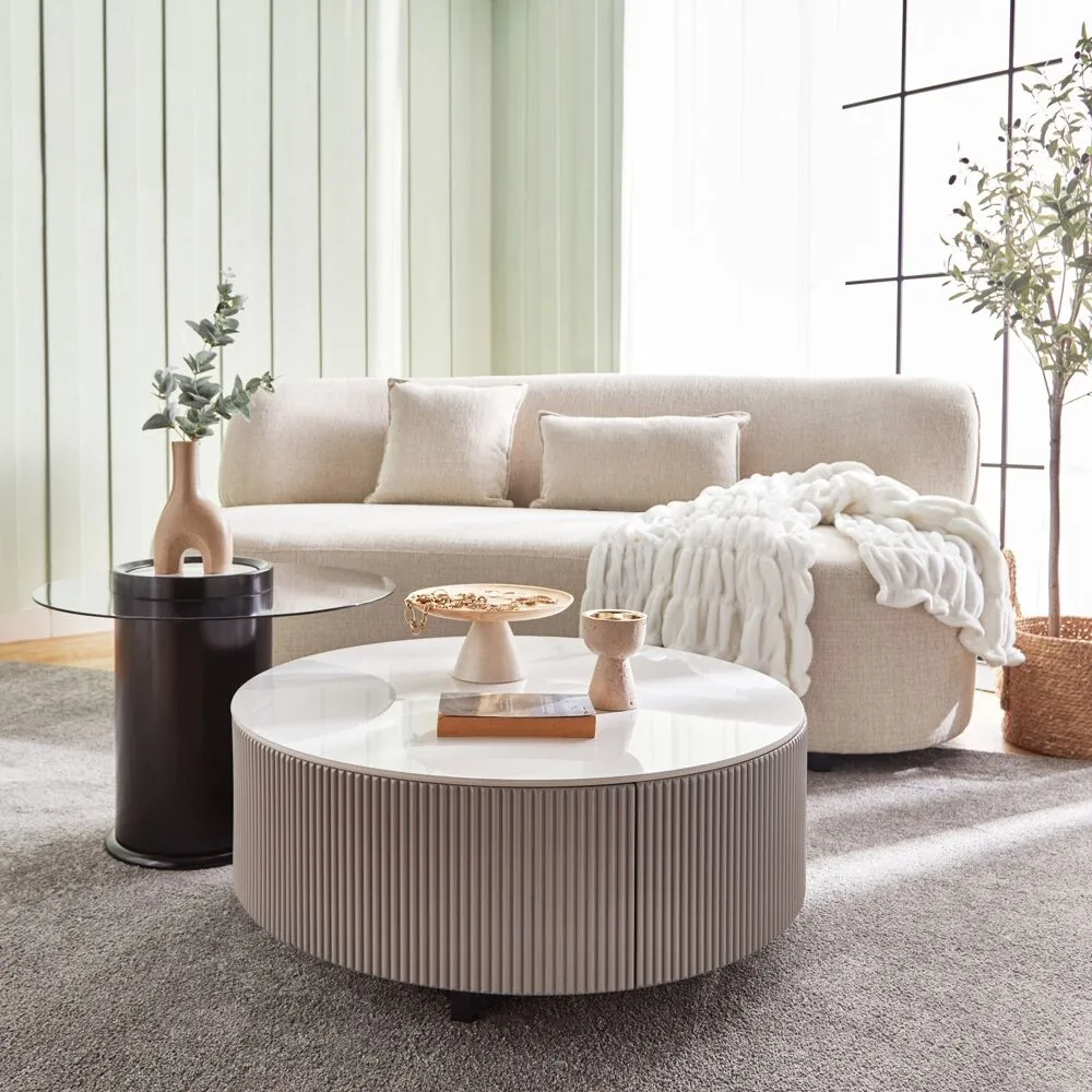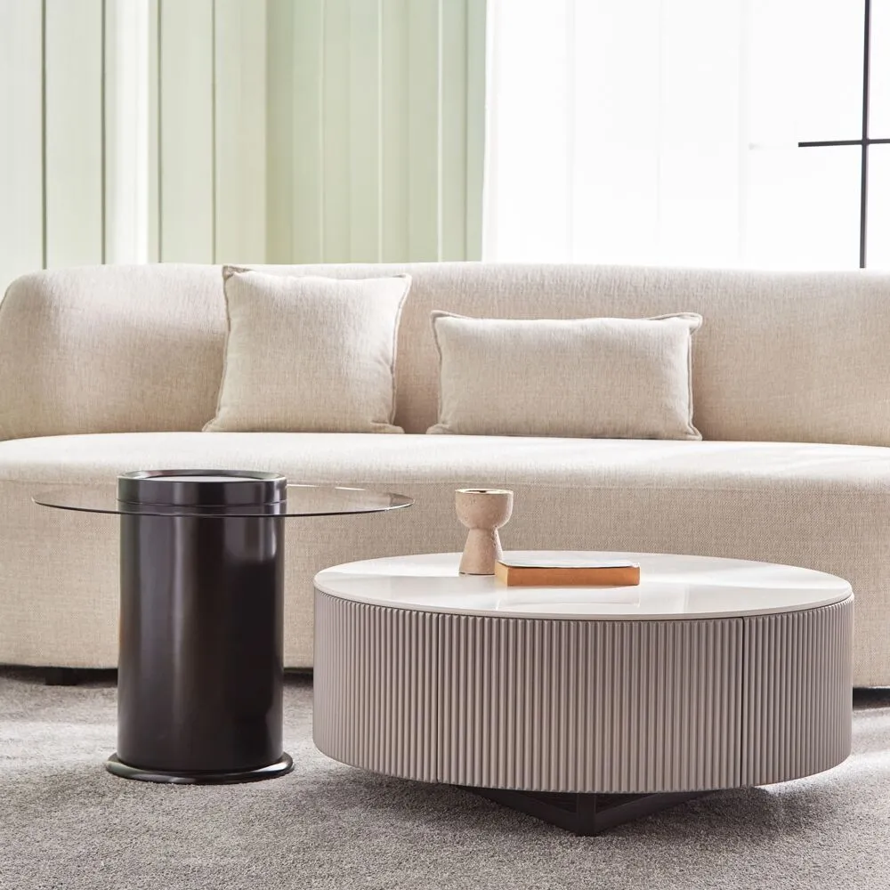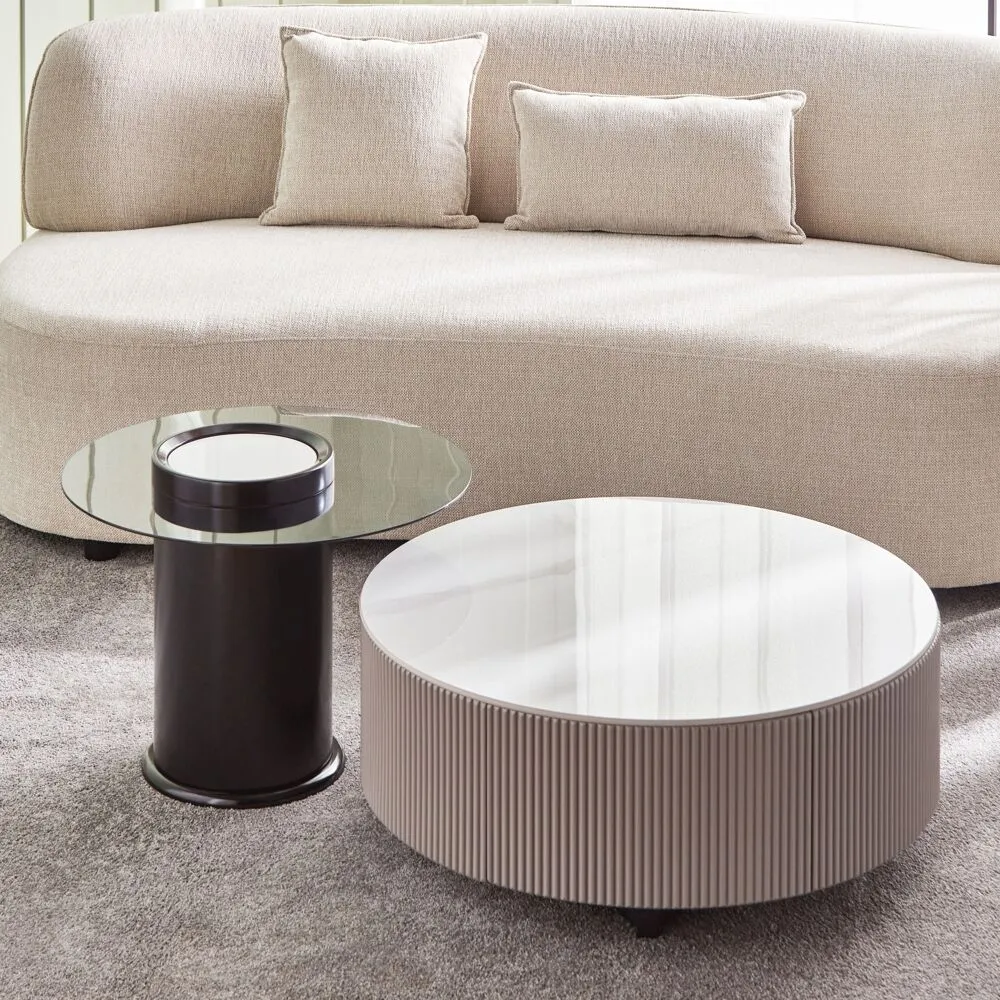 طاولة 1 القُطر: 80 سم x الوزن: 48 كجم x الارتفاع: 33 سم طاولة 2 القُطر: 58 سم x الوزن: 12 كجم x الارتفاع: 47 سم |