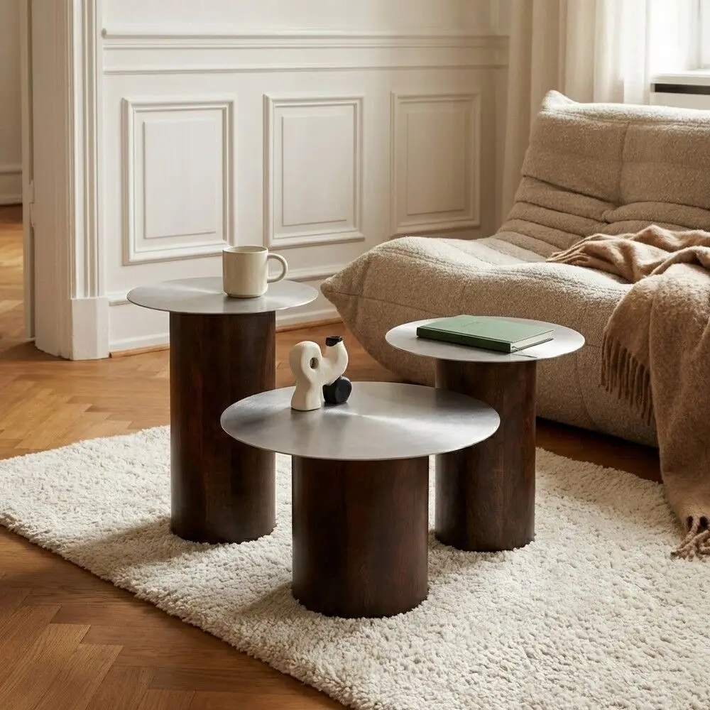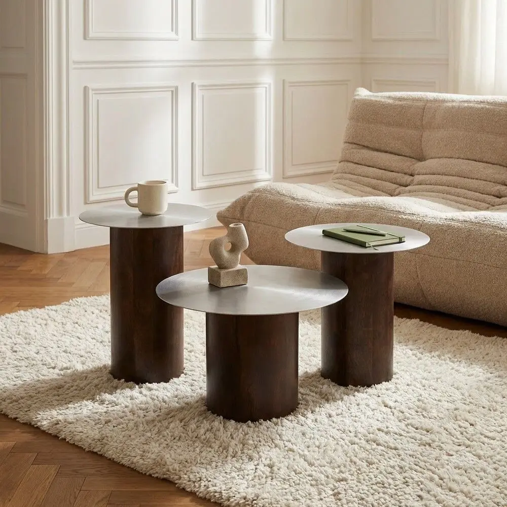 أضِف لمسة أناقة عصرية ولمعان دافئ إلى مساحتك مع طقم الطاولة الجانبية المكوّن من 3 قطع ، بتصميم يجمع بين جمال الخشب الطبيعي وقوة الحديد. خيار مثالي لغرف المعيشة، غرف النوم، أو زوايا الاستقبال، ليمنحك عملية عالية وأناقة لا تُقاوَم.