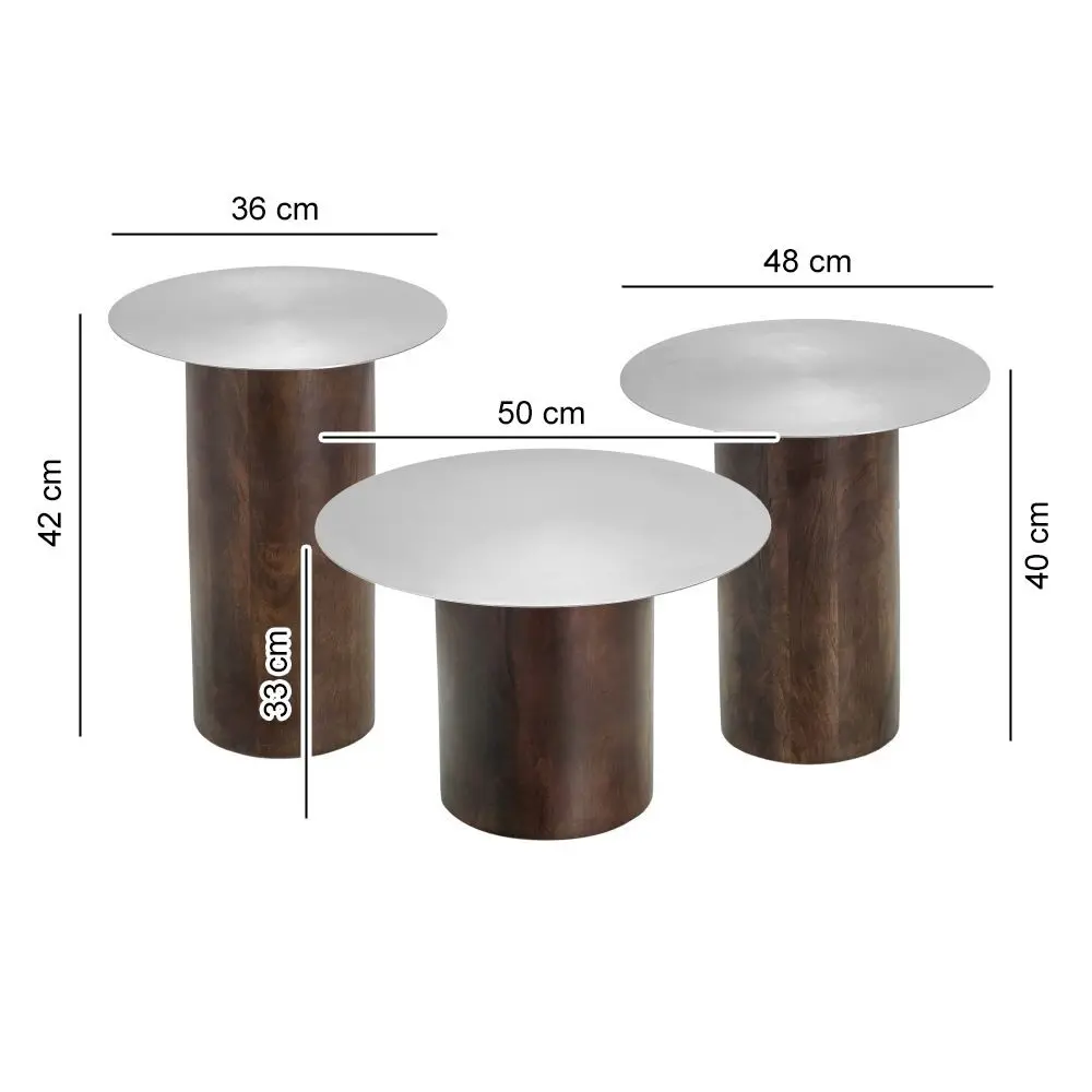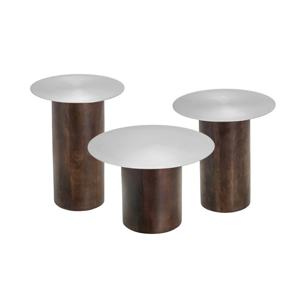 طقم طاولة جانبية رولا - 3 قطع - فضي وبني غامق