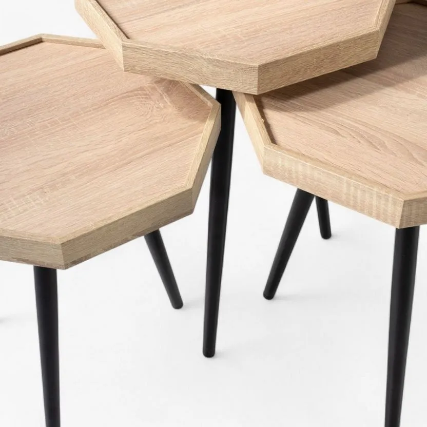 | يتضمن الطقم | 1 طاولة جانبية كبيرة 1 طاولة جانبية وسط 1 طاولة جانبية صغيرة فقط |