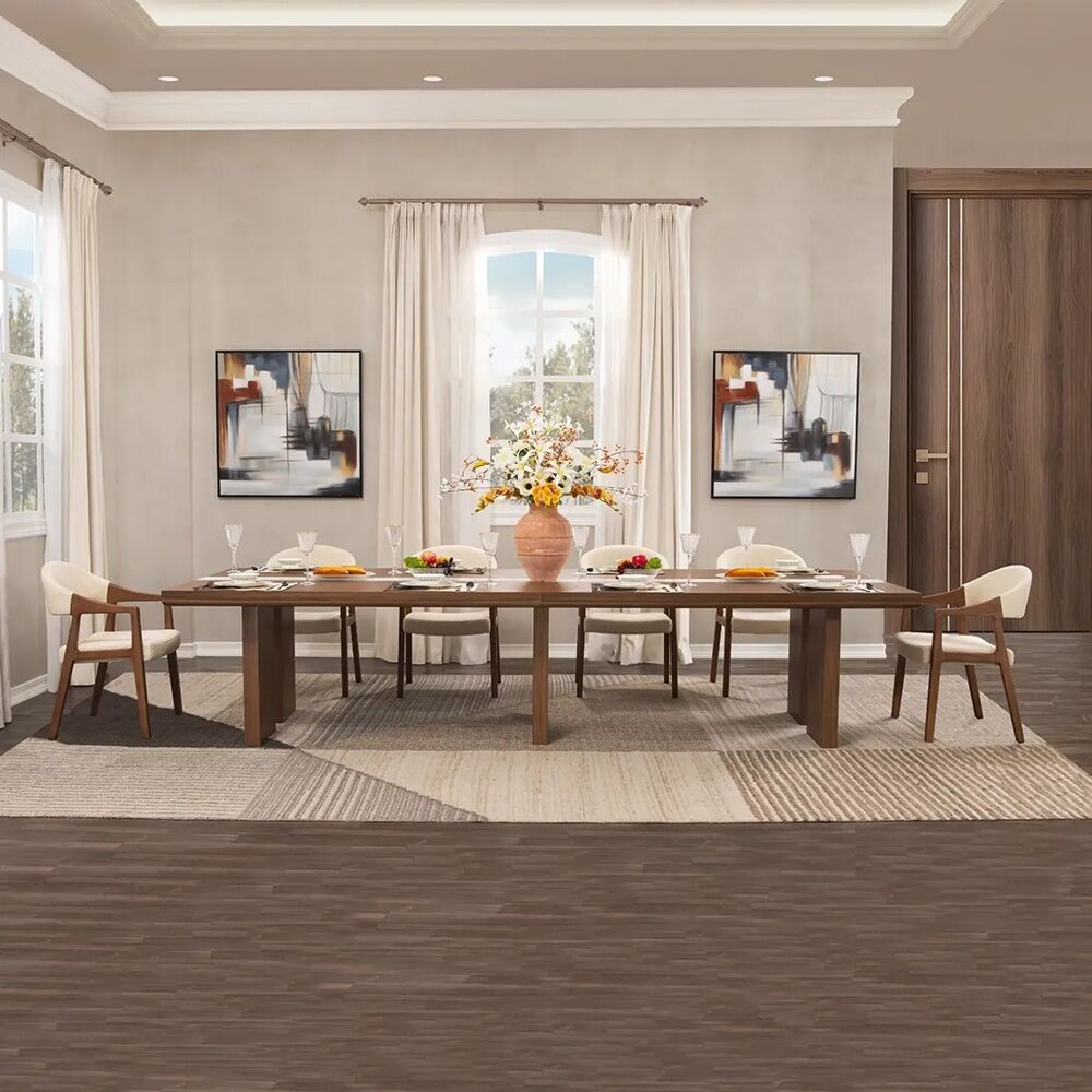 ابعاد الطاولة عرض 340 - عمق 120 - ارتفاع 75 سم ابعاد الكرسي عرض 57 - عمق 60 - ارتفاع 83 سم |
