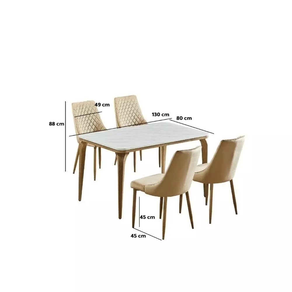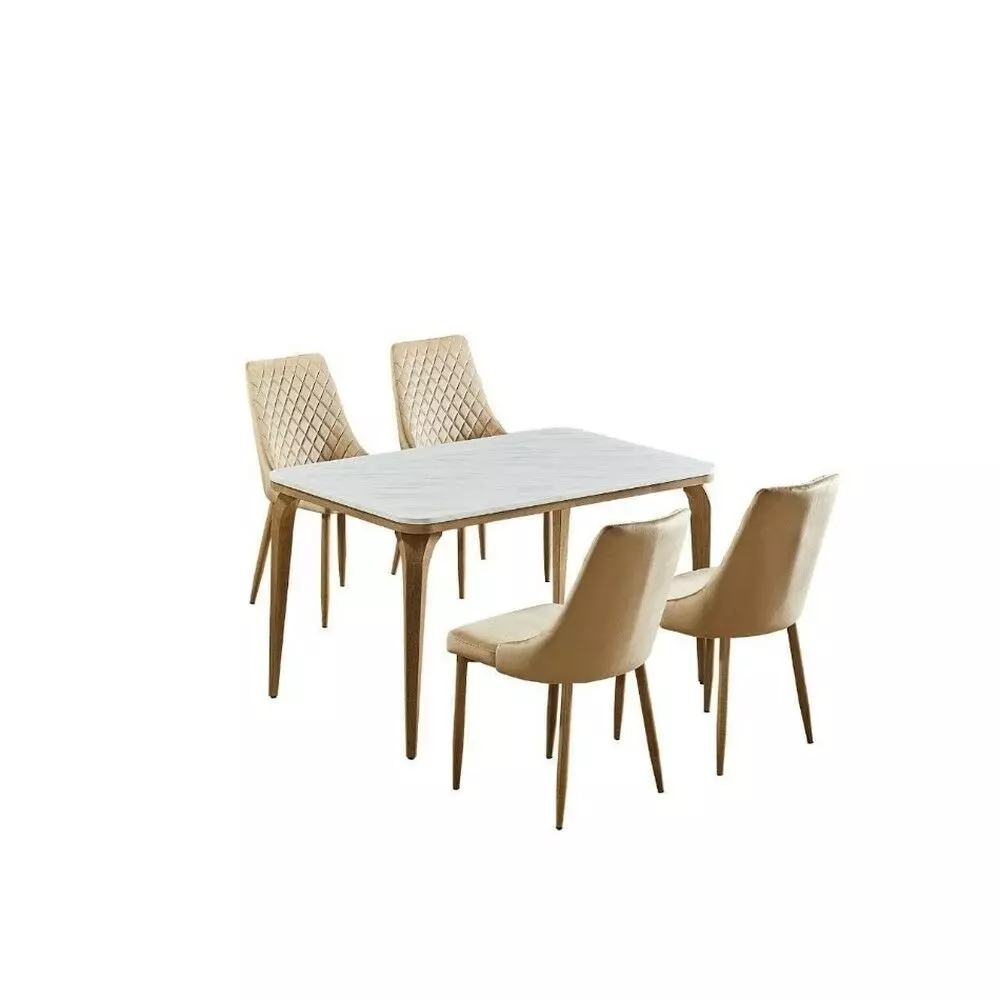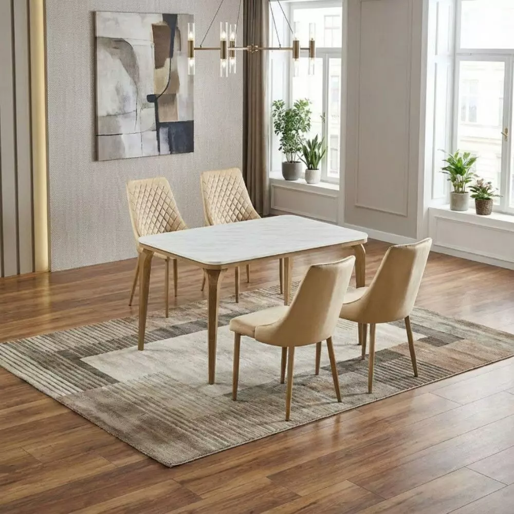 خامة الطاولة: بديل رخام بسطح أنيق ومظهر فاخر، سهل التنظيف ومناسب للاستخدام اليومي.