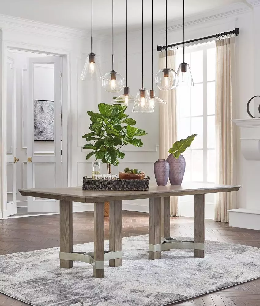 كرسي طعام جانبي - العرض: 59.94 سم - الارتفاع: 100.58 سم - العمق: 52.07 سم طاولة طعام مستطيلة من كريستنر : العرض: 213.36 سم - الارتفاع: 76.20 سم - العمق: 101.93 سم |