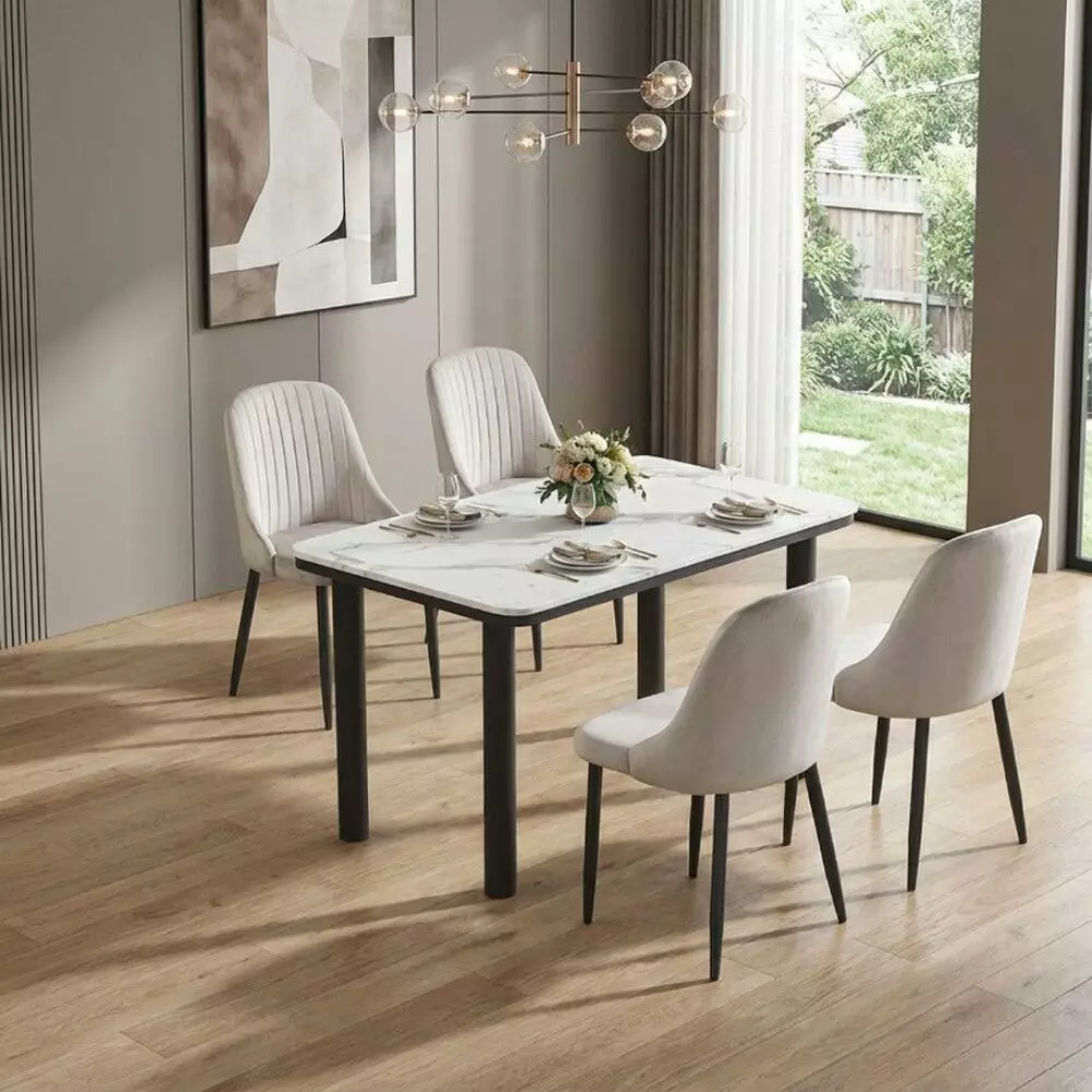 طقم طاولة طعام مارسيل - 4 أشخاص - أبيض رخامي ورمادي