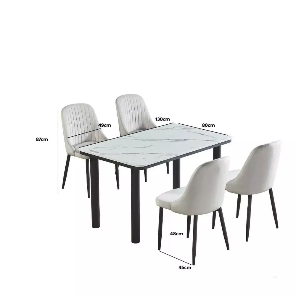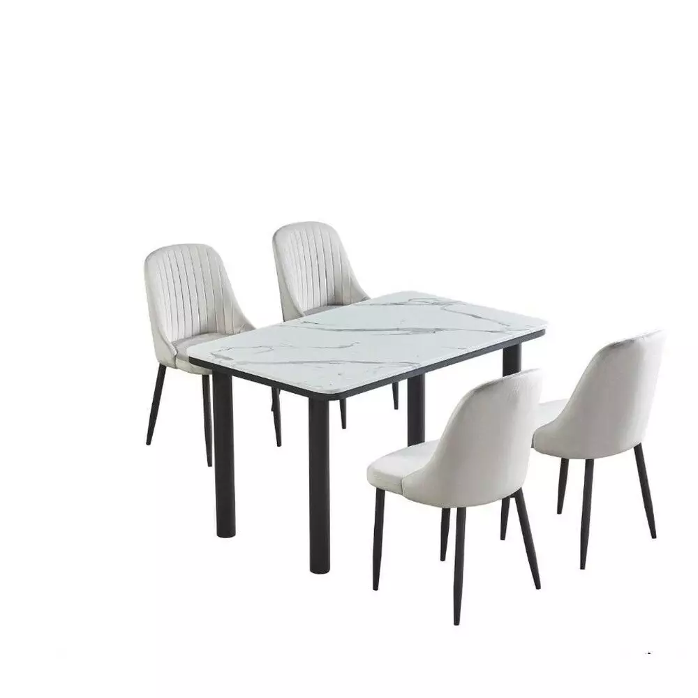 طقم طاولة طعام مارسيل - 4 اشخاص - ابيض رخامي ورمادي