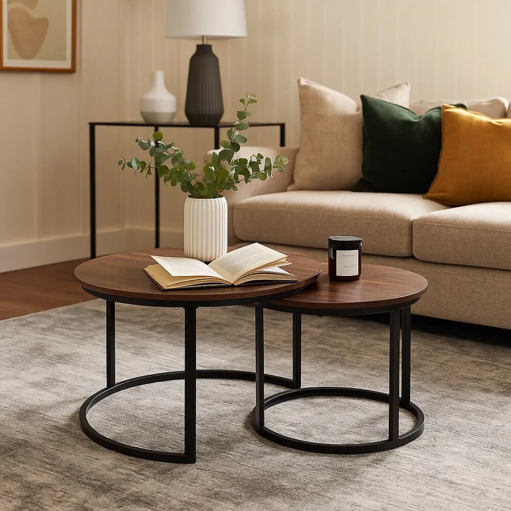 يُعدّ طقم طاولات القهوة إضافة مثالية لغرفة المعيشة، حيث يجمع بين الجمال والوظيفة في تصميم متناسق يضفي على المكان إحساسًا بالدفء والتنظيم.