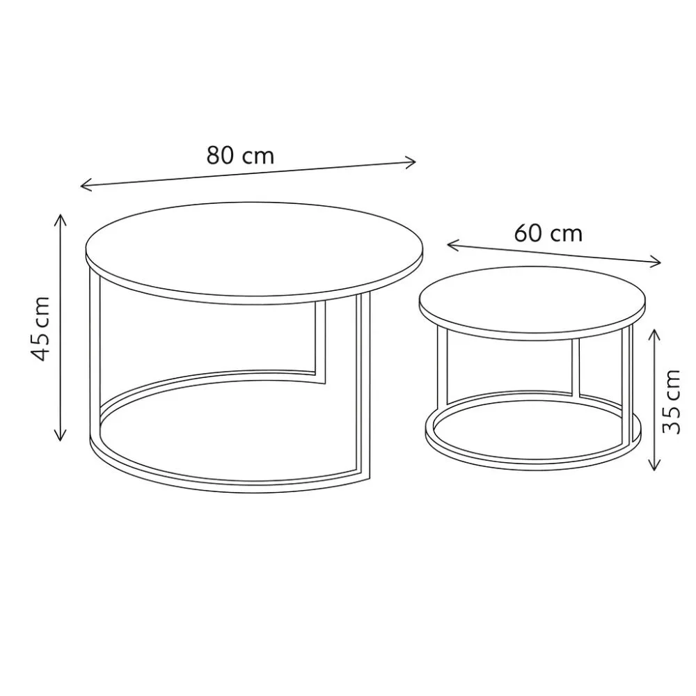 أبعاد المنتج الطاولة الاكبر: القطر 80 سم - الارتفاع 45 سم