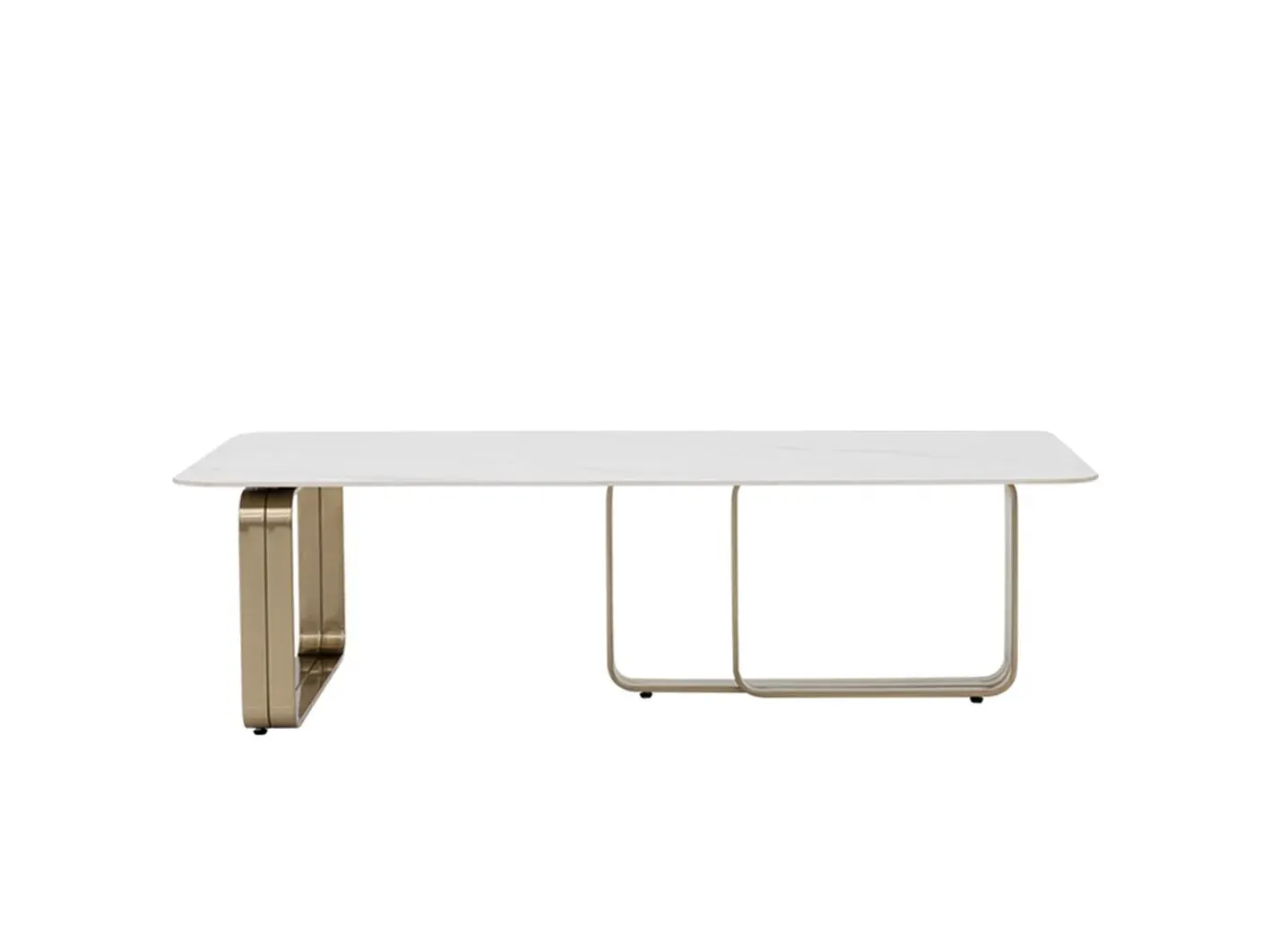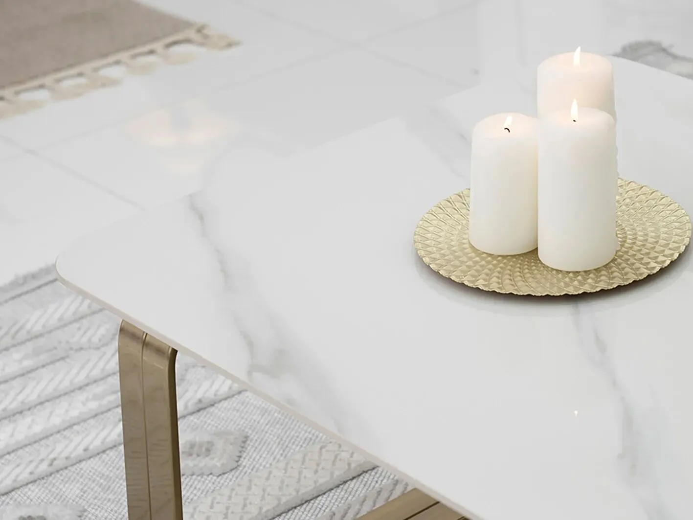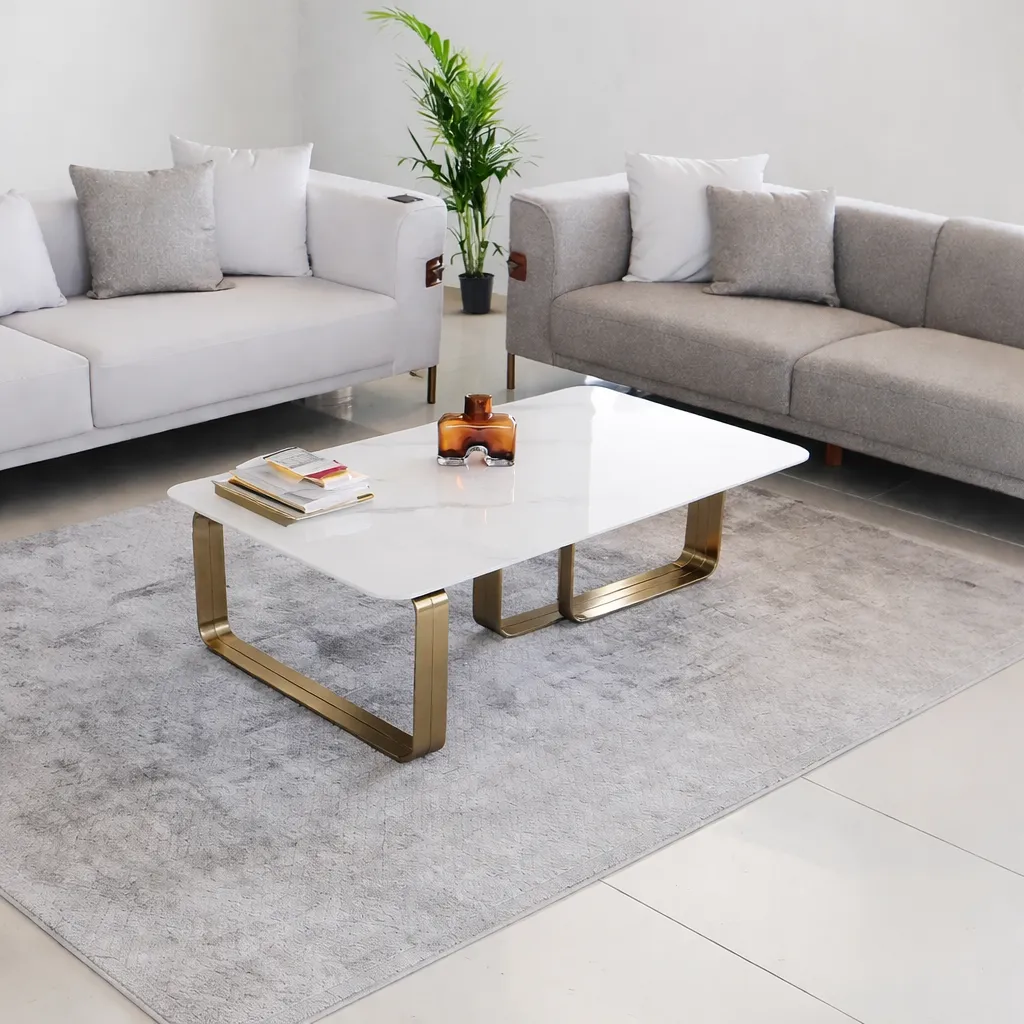أكملي جمال غرفة المعيشة الخاصة بك من خلال طاولة القهوة اهلت . تتميز الطاولة بسطح بورسلان مع الأرجل المعدنية الذهبية . كما يضمن التصميم الأساسي الفريد مظهرا عصريا فاخرا.