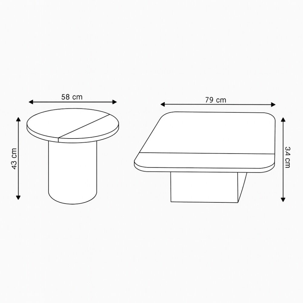 طقم طاولة قهوة أنيق يجمع بين سطح رخامي أبيض وقاعدة خشبية بتصميم عصري راقي تعزز من ثبات الطاولات وتضمن الجودة والمتانة طول فترة الاستخدام.