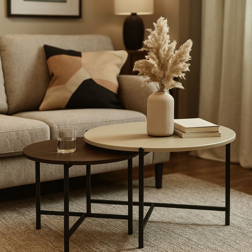 الطاولة الاولى : القطر 70 - الارتفاع 45 الطاولة الثانية : القطر 50 - الارتفاع 40 |