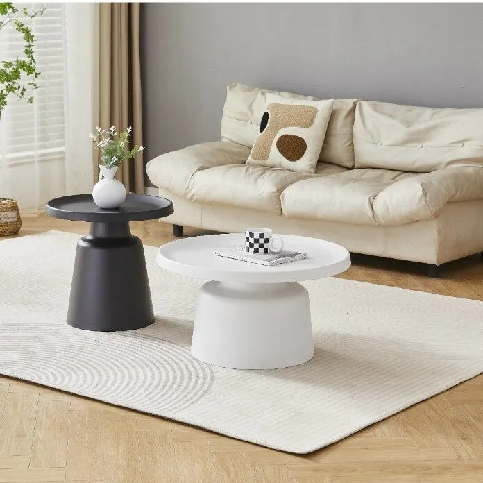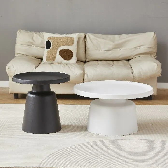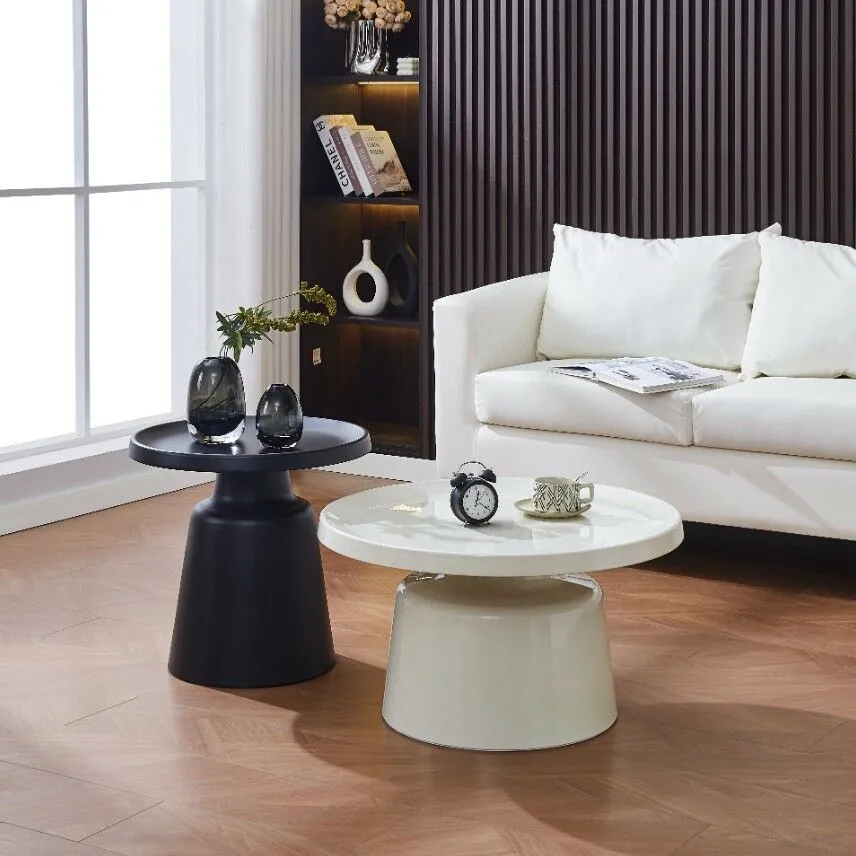 طقم طاولة قهوة وطاولة جانبية بتصميم عصري وأنيق، يتميز باللونين الأبيض والأسود المتناغمين، مما يضيف لمسة من الفخامة والتوازن إلى أي مساحة. الطاولات مصنوعة من معدن الحديد المتين، مع طلاء مسحوقي عالي الجودة الذي يحميها من التآكل ويعطيها لمسة نهائية لامعة وأنيقة. هذه الطاولات تجمع بين البساطة والمتانة، ما يجعلها مثالية للاستخدام اليومي في غرف المعيشة أو أي مكان آخر. تصميمها العصري يضمن أنها ستنسجم مع العديد من أنماط الديكور الداخلي، من الكلاسيكي إلى العصري.