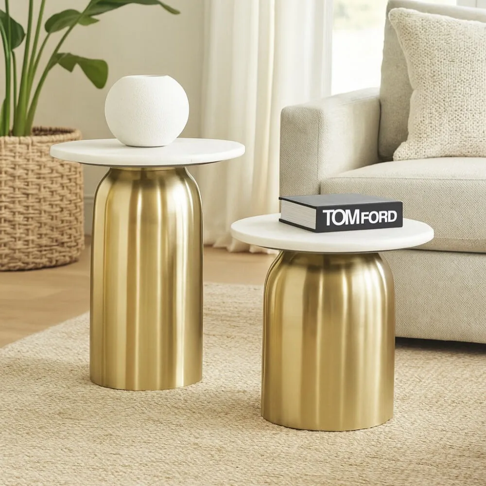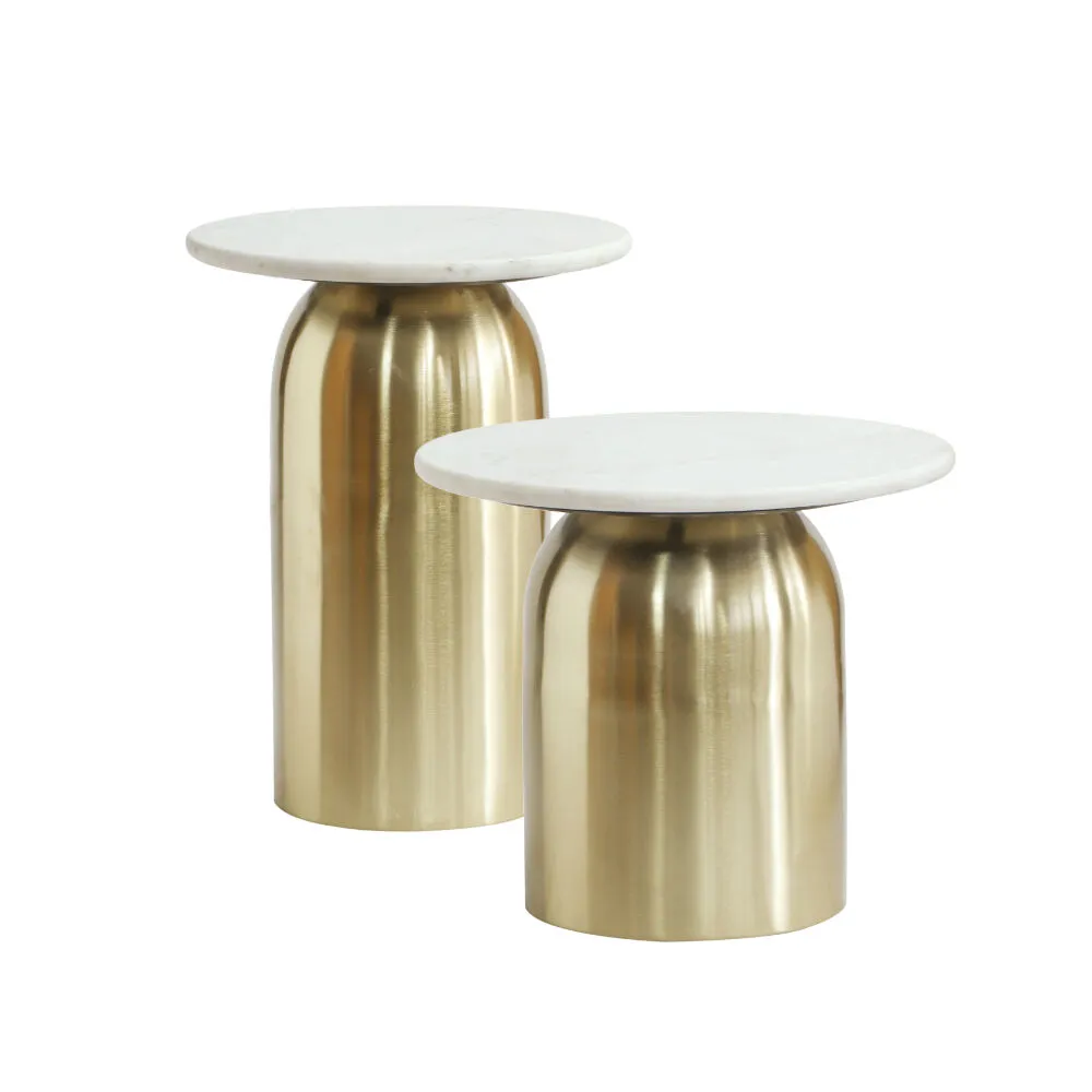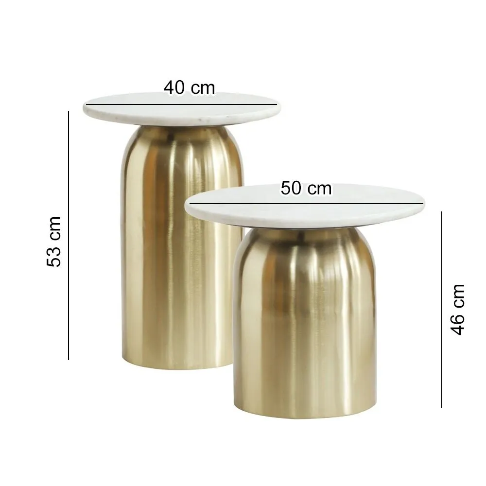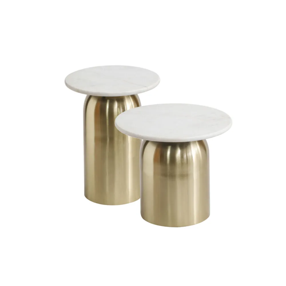 طقم طاولتين جانبية سارون رخام - ابيض وذهبي