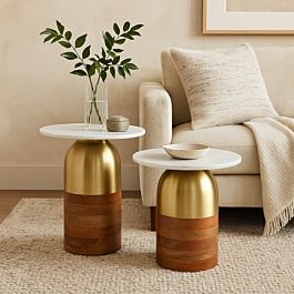 طقم طاولتين جانبية سطح رخامي قطعتين شينزو - ذهبي وبني