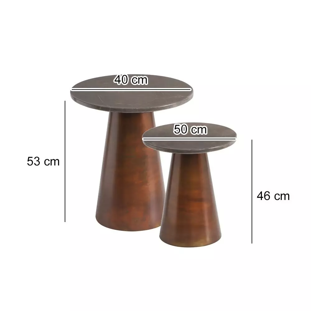 الطاولة الاولى : القطر 48 - الارتفاع 50 سم الطاولة الثانية : القطر 38 - الارتفاع 40 سم |